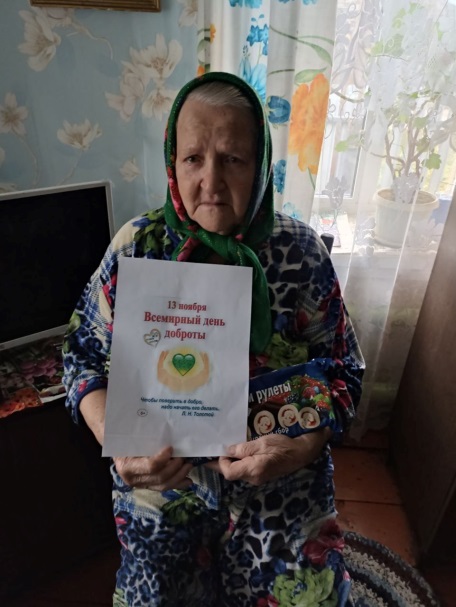 Социальные работники отделения социально-бытового обслуживания на дому № 1 Плотникова Т.И. и Титова С.Ю. провели акцию – поздравление «Подари частичку доброты» с получателями социальных услуг, рассказали об истории, идее и значении праздника, подарили сладкие подарки, подчеркнули, что даже маленькие добрые поступки могут изменить жизнь человека к лучшему.