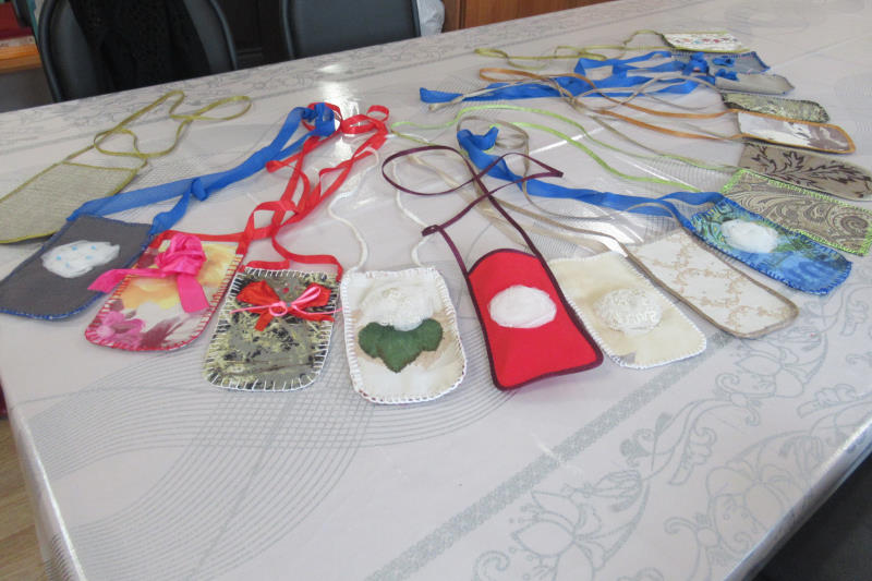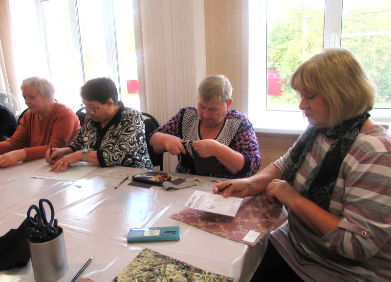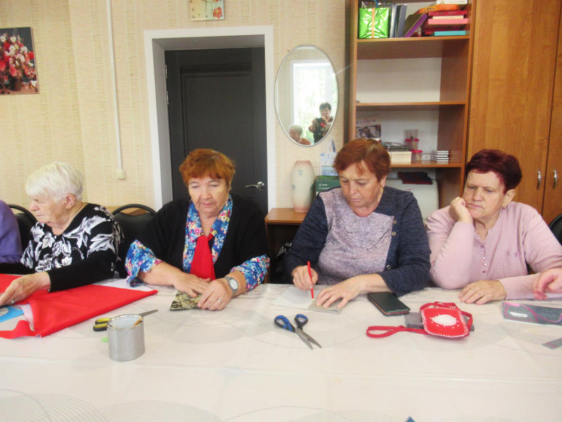 На занятиях трудотерапии отдыхающие отделения дневного пребывания ГБУ «ЦСОГПВИИ Лысковского м. о.» занимались изготовлением сумочки для телефона. Каждый декорировал своё изделие цветком из лент. Сумочки получились красивыми, а главное удобными и необходимыми для хранения телефона.
