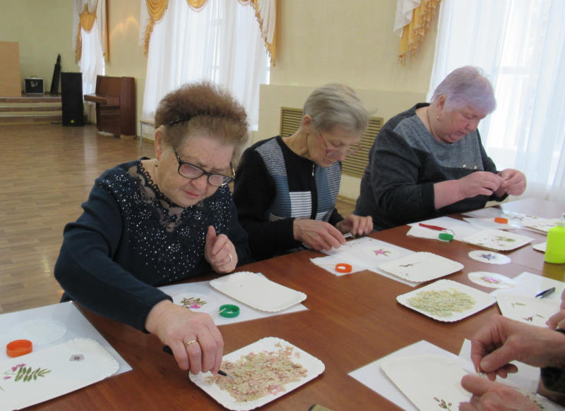 Веточки, листочки, цветочки, ягодки, просто кучка мха, перышки, травка… Казалось бы, просто ненужный, бросовый материал. А у Елены Фроловой, руководителя кружка «Прессованная флористика» в Центре народных промыслов и туризма «Рассвет»- это рабочий материал. На мастер-классе отдыхающие отделения дневного пребывания ГБУ «ЦСОГПВИИ Лысковского м. о.» сделали красивую салфетку из природных материалов, выбирая специальным пинцетом понравившиеся цветочки, листочки, травинки и наклеивали их на салфетку. У каждого осталась на память салфетка, изготовленная своими руками. Вот какая красота получилась!