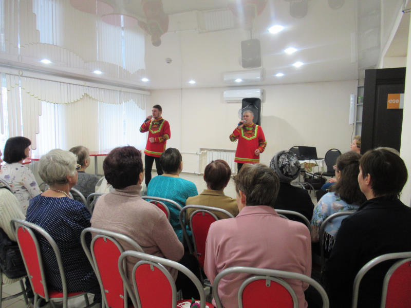 Вокальный дуэт «Форс-Мажор» (УПП ВОС) является постоянным участником мероприятий для отдыхающих отделения дневного пребывания ГБУ «ЦСОГПВИИ Лысковского м. о.». Денис Ермаков и Сергей Кудряев мастерски исполняют лирические композиции, вызывающие у слушателей чувство радости и умиротворения. К ним присоединилась солистка Любовь Архипова, порадовавшая публику несколькими душевными песнями. Энергичное выступление артистов настолько вдохновило зрителей, что зал наполнился танцующими под знакомые и любимые мелодии.