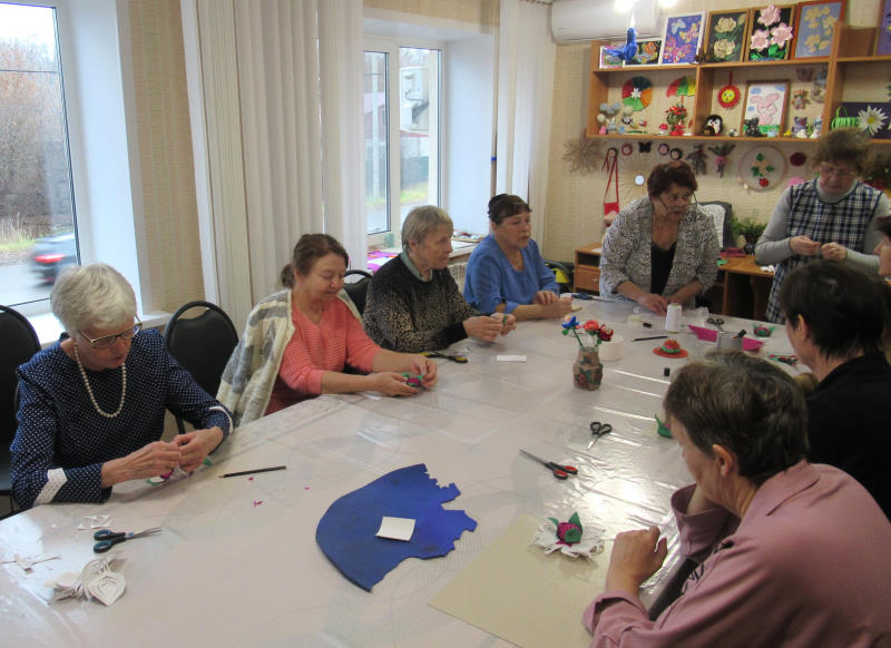 Отдыхающие отделения дневного пребывания ГБУ «ЦСОГПВИИ Лысковского м.о.» с увлечением занимались творчеством на занятиях трудотерапии, изготавливая розочки. Эти нежные цветы отлично подойдут в качестве новогодних сувениров, а сам процесс подарил участникам массу положительных эмоций и прилив бодрости.