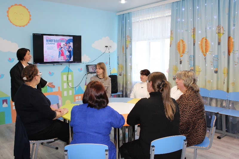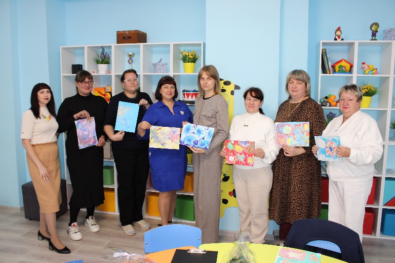Сегодня на базе комплексного центра состоялось мероприятие «Многодетная семья – очаг любви и верности», были приглашены многодетные матери, которые трудятся в нашем учреждении. С приветственным словом перед гостями выступила директор учреждения Ольга Королева. В своей речи руководитель отметила важность укрепления в обществе семейных ценностей. Далее для мам была проведена развлекательно – игровая программа с интересными конкурсами и заданиями. Психолог учреждения подготовила тренинг «Супер мамы!», направленный на актуализацию позитивного опыта воспитания детей. Затем на занятии эбру – терапии женщины смогли снять эмоциональное напряжение, творчески и приятно провести время.