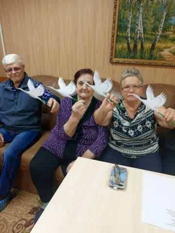 Социальные работники привлекли обслуживаемых к этому занятию. Бабушки и дедушки с большим интересом выполняли эти аппликации.