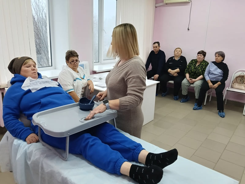 В ГБУ «КЦСОН Краснобаковского муниципального округа» продолжается обучение сотрудников, осуществляющих уход за тяжелобольными людьми на дому, в «Школе ухода» в рамках системы долговременного ухода. Программу практических и теоретических занятий подготовила медицинская сестра Чиркова Г.В. на темы: " Подготовка к кормлению. Приём пищи в кровати" . "Оборудование и приспособления для кормления ослабленых пациентов и с частичной физической утратой". Программа занятий в Школе ухода включает в себя изучение теоретических основ и практическое освоение навыков общего ухода, профилактики осложнений, методов самообслуживания, правил гигиенического ухода, питания и кормления, а также приемов первой доврачебной помощи.