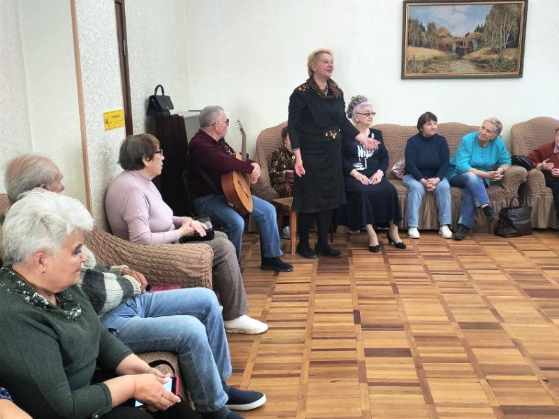 В честь праздника для отдыхающих пенсионеров состоялся приятный музыкальный подарок — выступление исполнителей бардовской песни Владимира Архипова и Ольги Телицыной. Тёплые и душевные песни в исполнении мастеров жанра создали атмосферу уюта и радости, подарив слушателям хорошие эмоции и заряд бодрости.