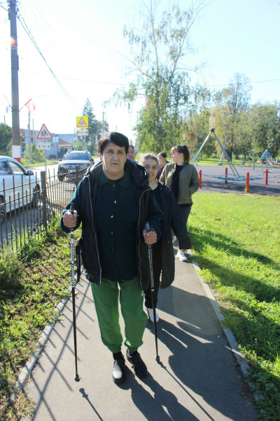 В отделении дневного пребывания с инструктором по трудовой терапии проводится занятия по освоению скандинавской ходьбы.