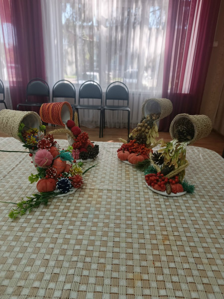 Отдыхающие отделения дневного пребывания изготовили осенний топиарий "Парящая чашка".