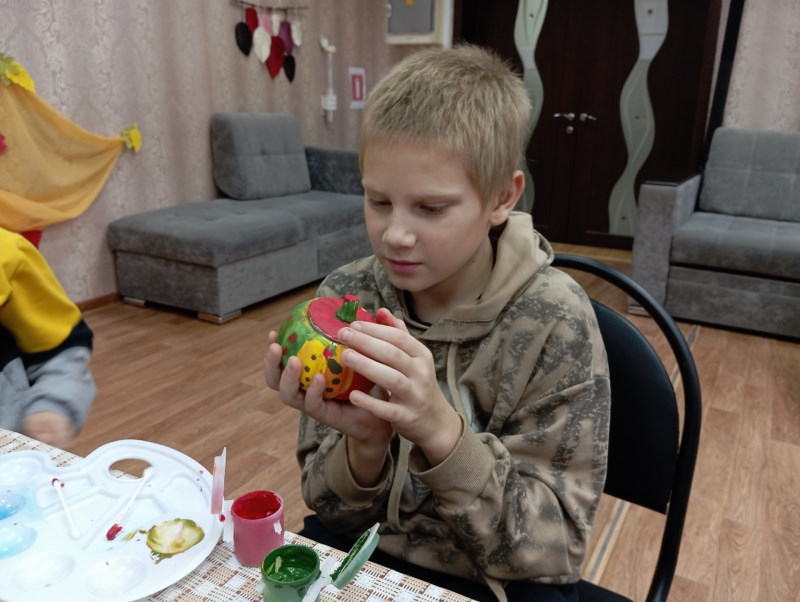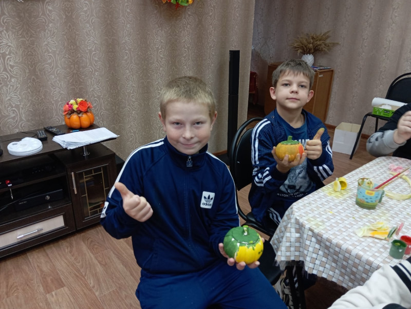 В интеграционной мастерской "Познавайка" дети занимались росписью гипсовых шкатулок в форме тыквы