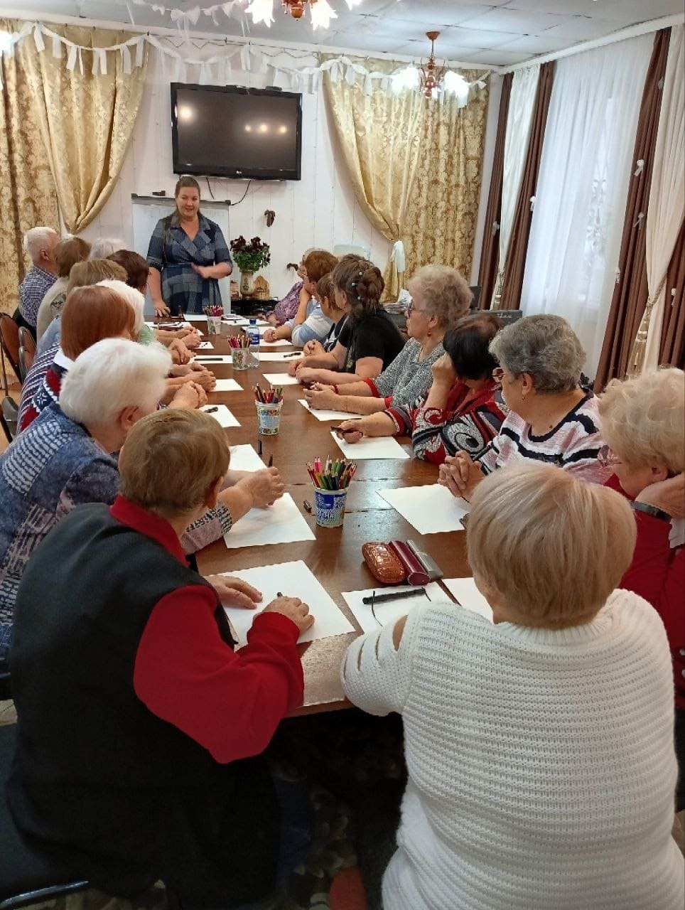 Очередное мероприятие в рамках "Мини-клубов по интересам" состоялось 15 октября в г. Ворсма на базе клуба ветеранов "Общение". Это был праздник урожая и изобилия, где можно было попробовать домашние заготовки: овощные салаты, соленья, закуски, варенье и разнообразную выпечку. Вместе с ведущим и социальными работниками ГБУ "ЦСОГПВИИ Павловского муниципального округа" приглашенные гости знакомились с народными поверьями и приметами, связанными с плодами и растениями, пели песни и читали стихи. Вспоминая о прекрасном времени года — осени, и о том, что происходит с природой в этот период, все с удовольствием посмотрели сценку по мотивам русской сказки "Репка". Центральным украшением праздника стала красочная овощная выставка «Дары осени», где были представлены яркие образцы фруктов и овощей, а также заготовок на зиму и разнообразной выпечки. Закончились посиделки дискотекой под осенние мотивы, а расходились гости не только в прекрасном настроении, но и с рецептами для создания новых шедевров консервации.