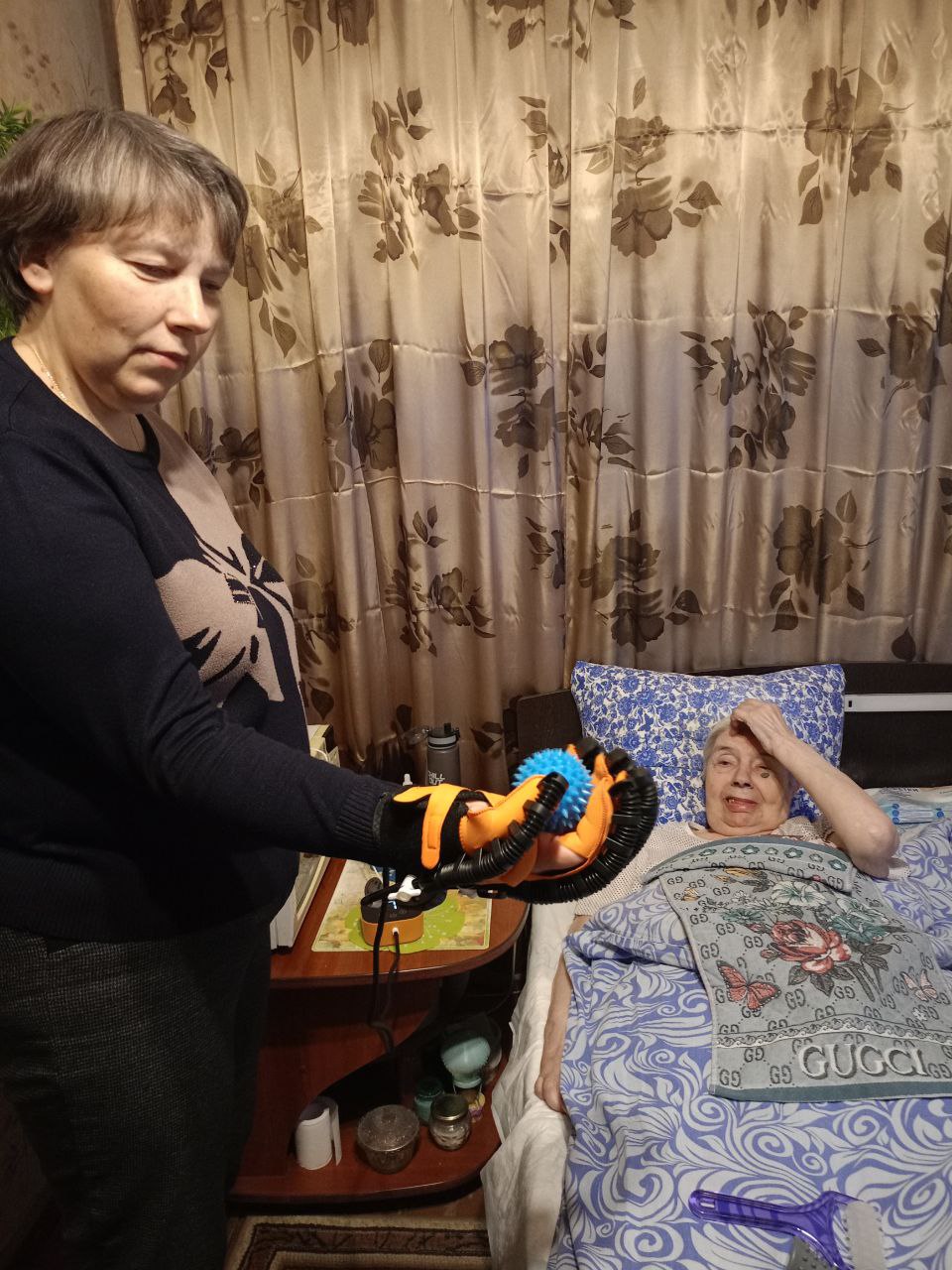 Даны консультации по вопросам реабилитации, были обсуждены современные средства ухода, профилактика образования пролежней и возможных осложнений.