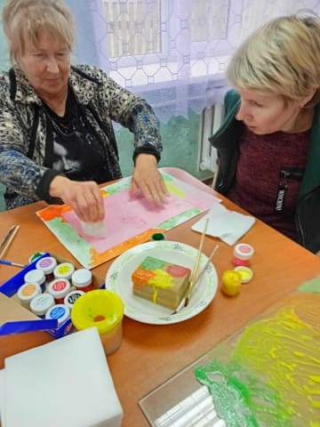 В отделении дневного пребывания для получателей социальных услуг был проведён мастер - класс под названием «Капли на стекле» c применением техники – витражная роспись на стекле.
