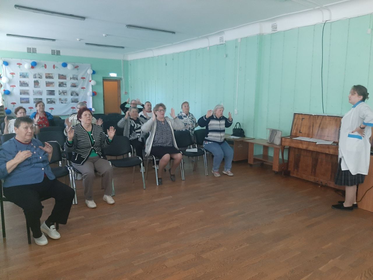Отдыхающие в ОДП с удовольствием повторяли упражнения лечебно-профилактической гимнастики за специалистом ЛФК Центра пульмонологии и некоторые советы брали себе на заметку. Было решено еженедельно проводить данные упражнения для профилактики бронхо-легочных заболеваний.